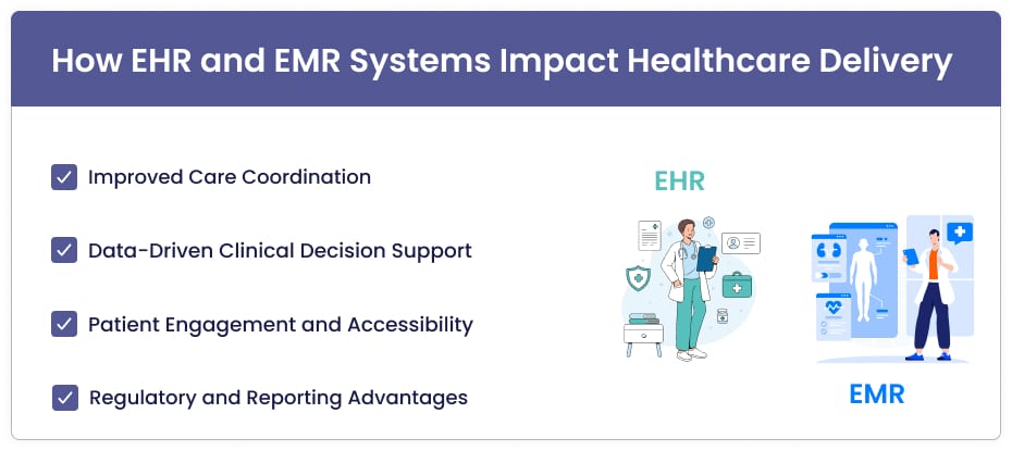 EHRs with predictive analytics can also identify at-risk patients before complications develop, enabling proactive rather than reactive care. While EMRs remain valuable for documentation, they generally lack the advanced analytical and cross-system capabilities that EHRs provide.